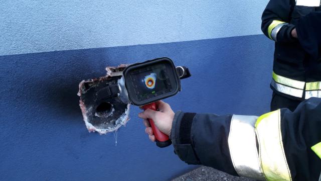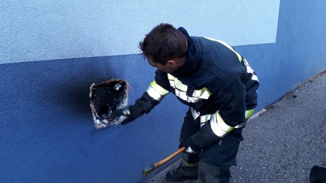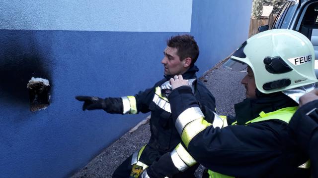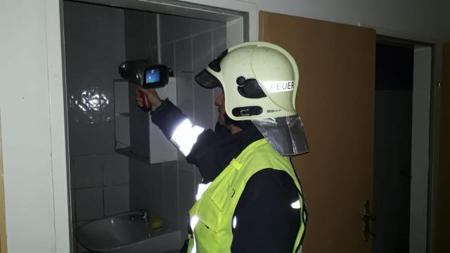 Mit der Wärmebildkamera konnte noch ein Glutnest entdeckt werden, das sich bereits hinter der Fassade ausbreitete. Auch dieser Brandherd konnte rasch abgelöscht werden.