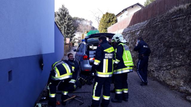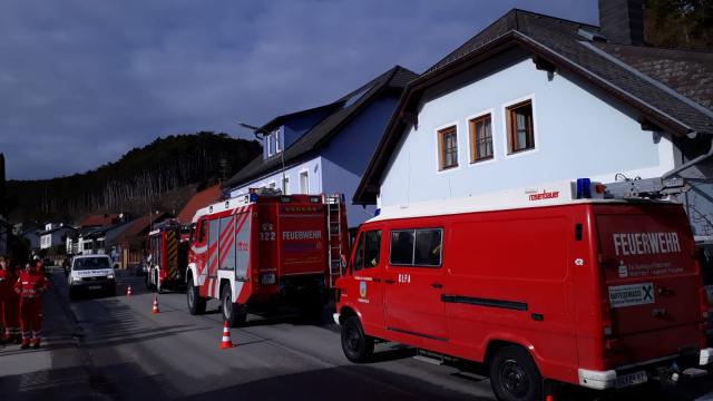Ein aufmerksamer Anrainer bemerkte, dass aus einem Entlüftungsrohr des Zweifamilienwohnhauses in der Gutensteinerstraße Rauch aufstieg und verständigte über den Notruf die Feuerwehr. Wie bei dem beschriebenen Schadensbild üblich, alarmierte der diensthabende Disponent in der Leitstelle die Kameraden aus Pottenstein und Fahrafeld. Auch Sanitäter des Roten Kreuzes aus St. Veit wurden zur vorsorglichen Unterstützung gerufen.